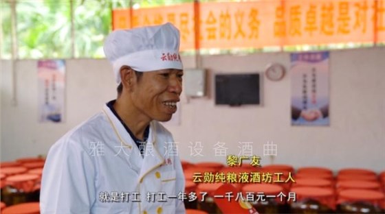 由于酒訪的擴(kuò)規(guī),黎云勛招聘當(dāng)?shù)卮迕袂皝砉ぷ?。古寨村委會三排村低保貧困戶黎廣友在云勛純糧液酒坊務(wù)工,實(shí)現(xiàn)在家門口就業(yè)。